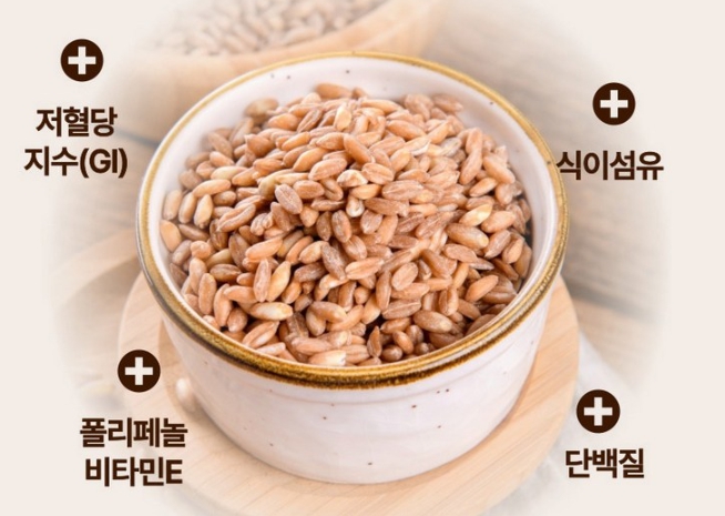 밀(wheat) 계열에 속하는 통곡물이야. - 생김새는 쌀처럼 길쭉하고 통통해서