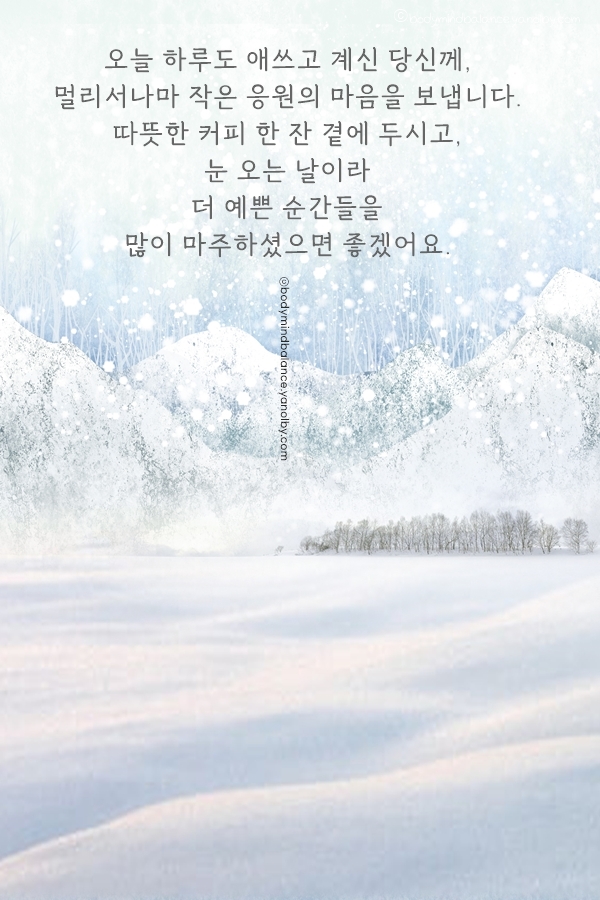 올해의 달력이 거의 끝나 간다고 해서 모든 가능성이 다 닫힌 것은 아니겠지요. 오히려 지금이야말로 2025년을 돌아보며 내게 필요한 것과 내려놓아야 할 것을 정리하고, 2026년을 향한 방향을 다시 세울 수 있는 중요한 시기인 것 같습니다. 잠시 숨을 고르며 포기하고 싶었던 일들을 한 번 더 바라보고, 작은 부분부터 다시 손보는 용기를 내 보시면 어떨까요. 지친 마음에는 위로를, 내일을 향한 발걸음에는 힘을 더해 주는 따뜻한 12월이 되시길 응원합니다.